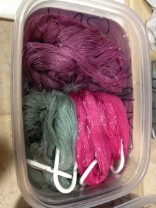 I’m working my way through all my winding of skeins and getting geared up for more thread dyeing. Â Happily taking color suggestions.