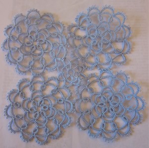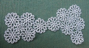 The original piece of tatting that makes up the main part of the belt is about 27 inches because I didn’t want the ends where it attaches to the ribbon to show from the front. Now that I’ve got a finished version though I’m re-thinking this. I actually think it work out pretty well and the ribbon attachments could be on the side or even a little bit on the front. A fancy motif over the end of the ribbon would be a nice accent to the sides of the best. AND that would have the added advantage of meaning less tatting would be needed for the main part of the belt. Instead of 27 inches next time I’m going to try something more like 18 inches.