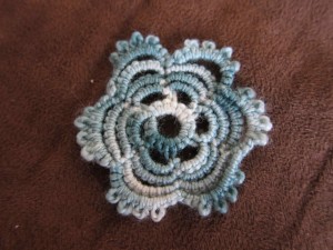In the picture above is a very familiar motif. The square piece is made up of the same motif that I’m making my shawl out of.