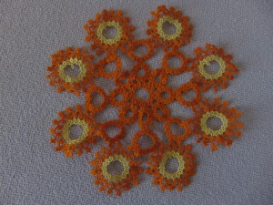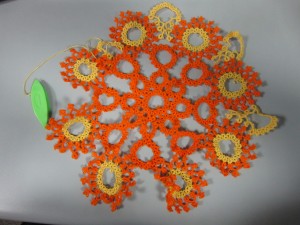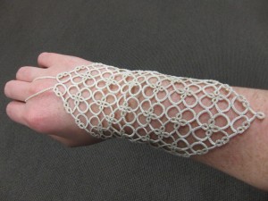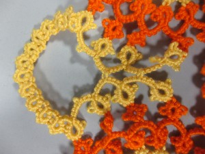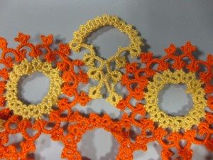 It got me thinking again about a couple months ago when Pat Stevens showed Sarah and me her fantastic shuttle collection.  It’s an amazing collection with I don’t know how many hundreds of shuttles that span the entire history of tatting.  It was fun to talk to her about it, but honestly, I can’t see myself ever really collecting shuttles.  At least not just for their own sake.  To me the shuttle is a tool and if it can’t be used for actual tatting I loose interest.  Sure.  I have lots of different shuttles, but in a way, the astetics of the shuttle are second to the usefulness.  I’m actually starting to look into the idea of making my own wooden shuttles (don’t hold your breath, folks.  I know nothing about woodworking so it’s a long way off) not because I’m excited about making the shuttles, but because I’m excited about tatting with a shuttle that’s EXACTLY what I want in a shuttle.